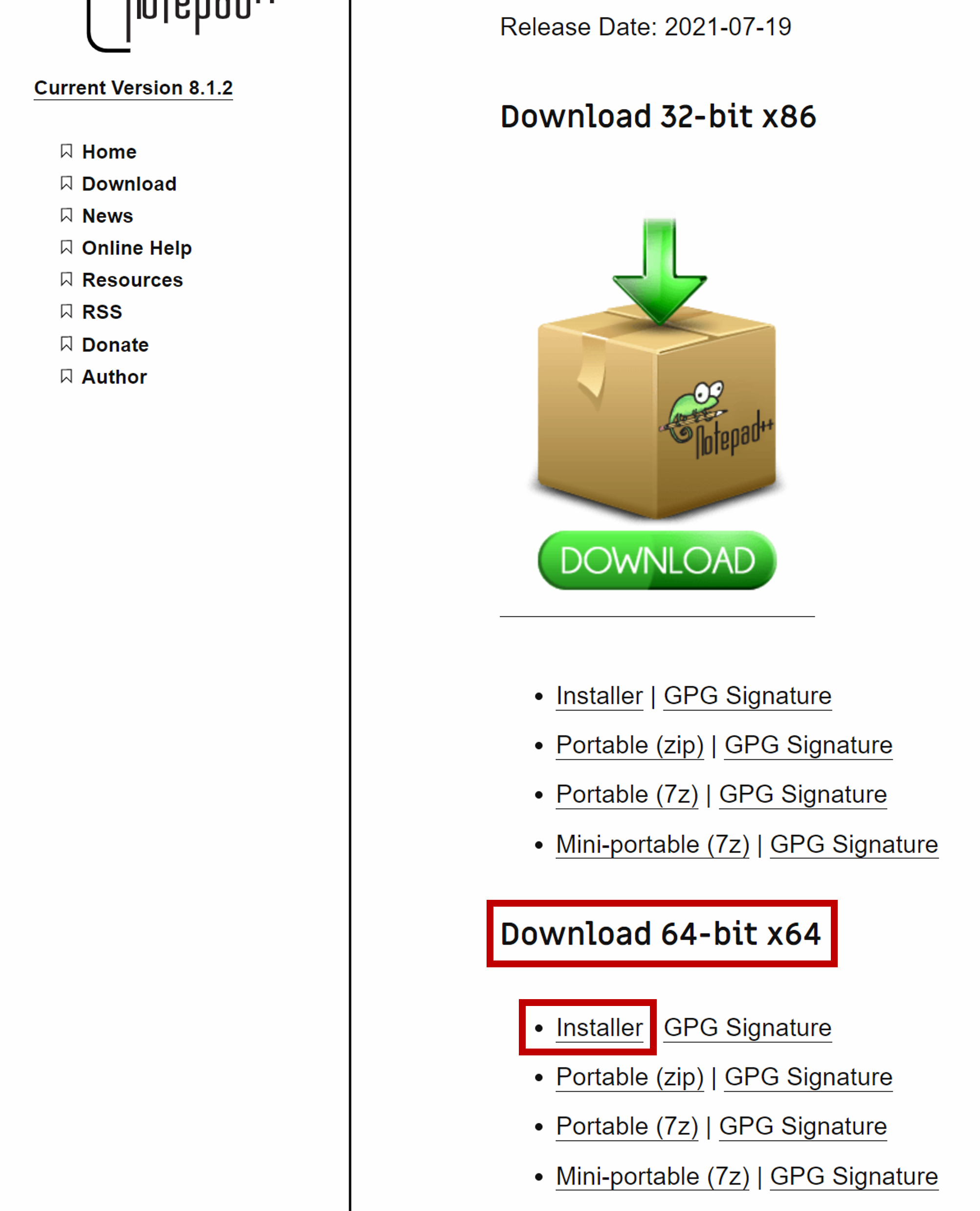 이 중 자신의 운영체제에 맞는 설치 파일을 다운로드하시면 됩니다. 다운로드가 완료되면 npp.8.1.2.Installer.exe 파일이 생성되어 있을 것입니다.