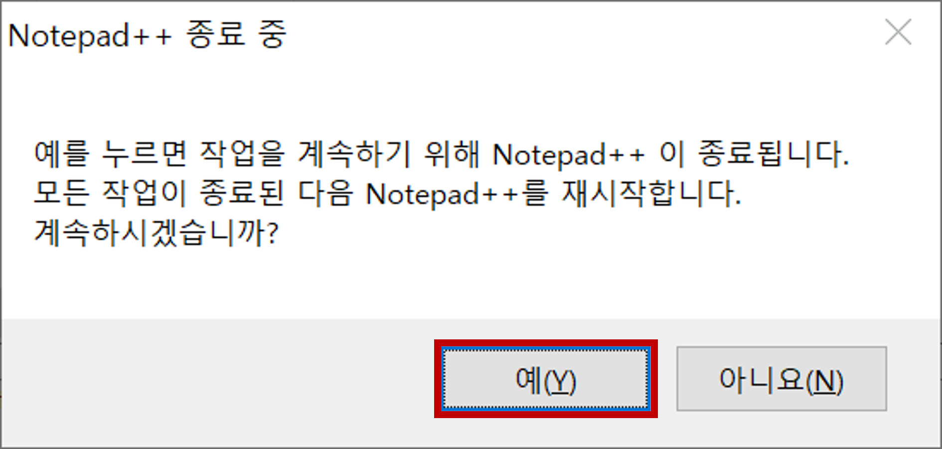 위와 같은 팝업창이 뜨면 [예(Y)]를 눌러 설치를 진행해주시면 됩니다.