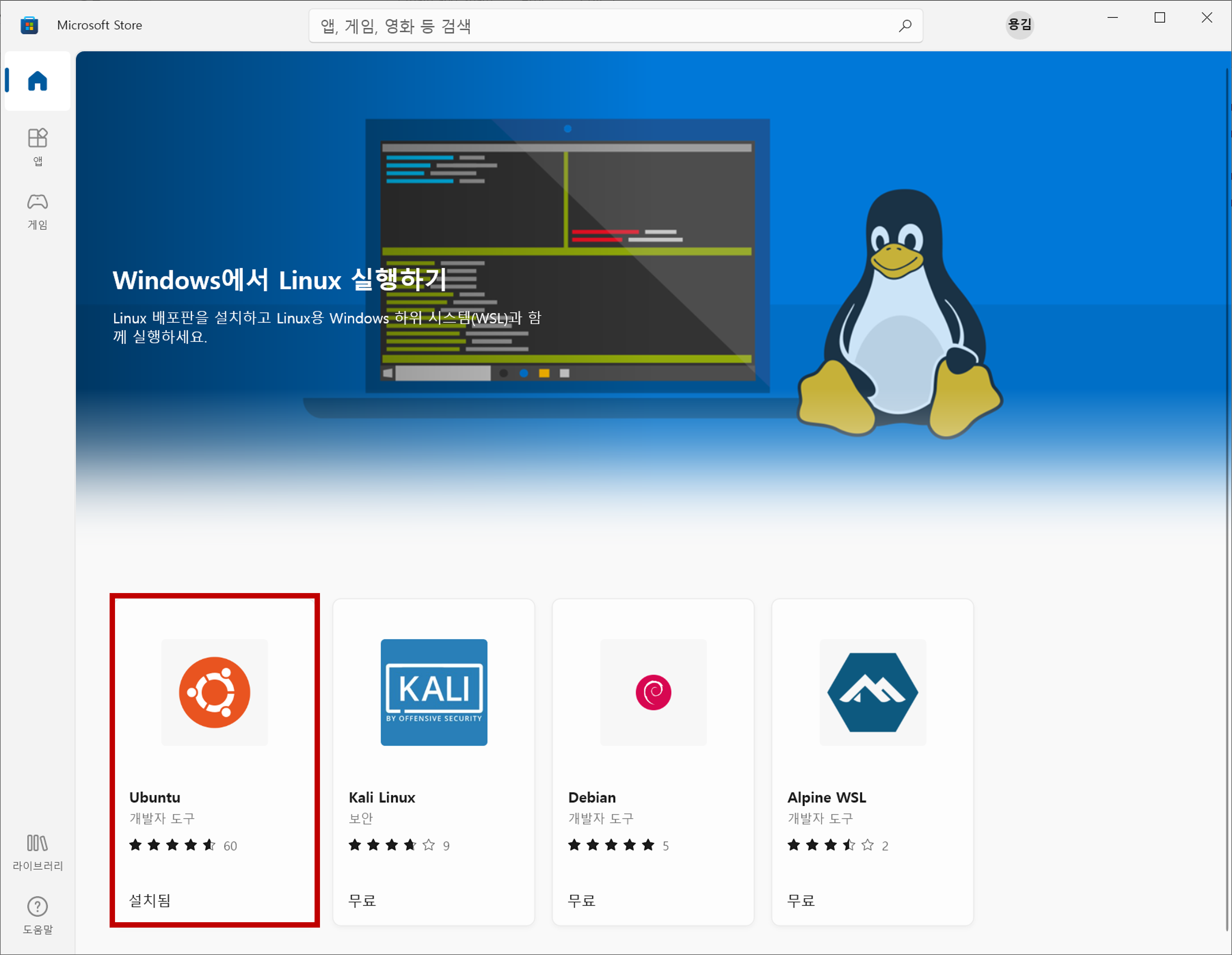 재부팅이 완료되면 "https://aka.ms/wslstore"에 접속하여 Ubuntu를 실행해줍니다.
